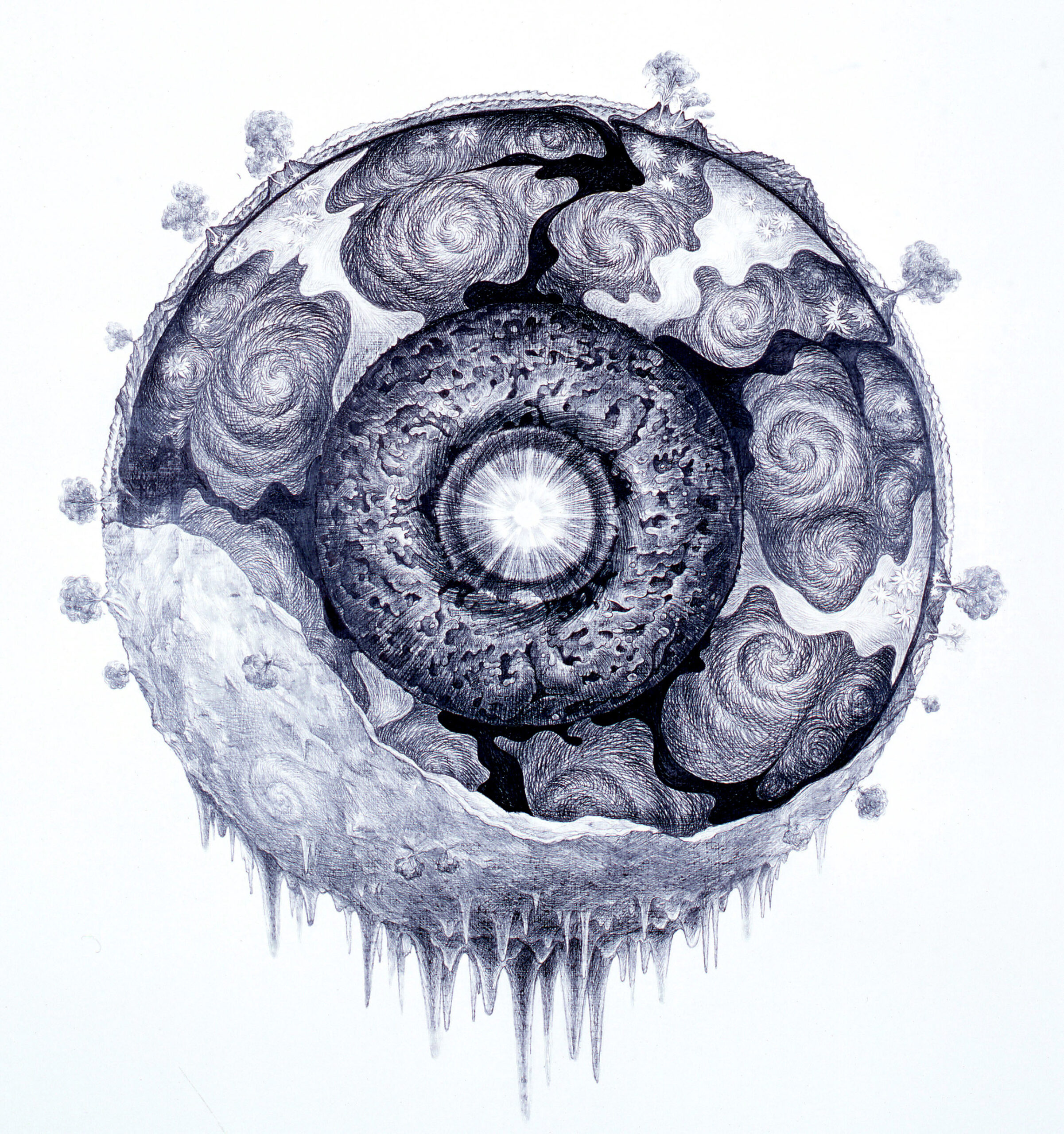 Acrylic, Japanese ink, pencil and colour pencil on Japanese paper and wood panel